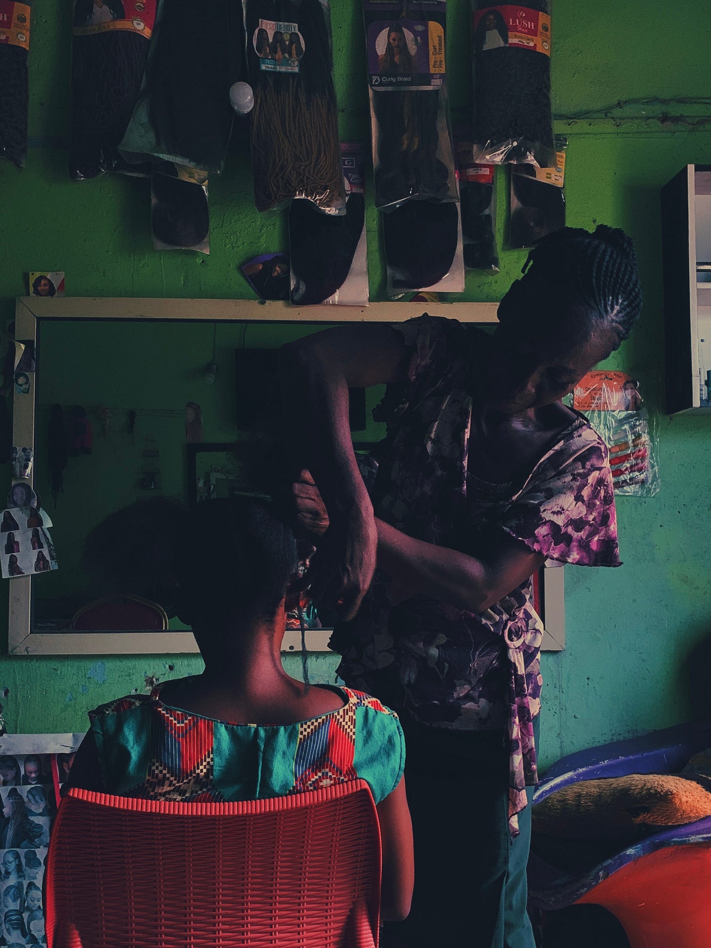 I know a woman. Her name is Aunty Rukkayah, and she does my hair. I believe you might know an aunty Rukkayah too. I have built an emotional connection with her from simply braiding my hair with her every month for a year. The first time she touched my hair, it felt like understanding need not have been communicated through words. The hairstyle was dolly braids, and the curls were not dropping as they should have. She looked at me and then at the reference picture, and got the job done. If one is willingly ready to learn your hair, carefully and gently, there is a connection to be nurtured. Lovers are the usual go-to with hair and connection manifesting, but I have fallen in motherly love with my hair stylist. Through hair, we nurture communities and relationships, rendering each other responsible for our perceptions and outlook— building trust and exercising surrender to vulnerability.